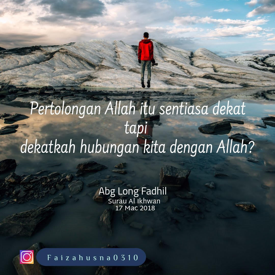 Baikilah dan jagalah hubungan dengan Allah. Mohonlah supaya sentiasa dalam lindungan rahmatNya. Rasakan kewujudan Allah dalam setiap keadaan, kerana perkara inilah yang akan sentiasa memperbaiki mutu peribadi diri kita. Insyaallah. Semoga aku, kau dan kalian peroleh syurga yang dijanjikan Allah.